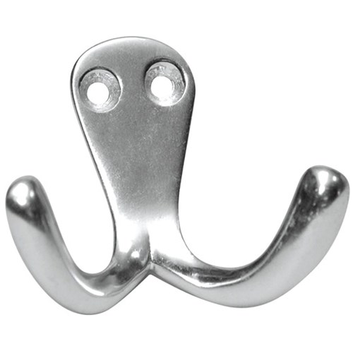 Wardrobe hook aluminum polished, with 2 hooks, 55x62x30 mm
